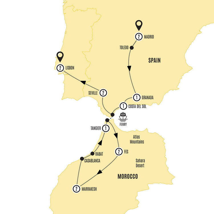 What better way to end your epic adventure through Spain, Morocco and Portugal than with a final dinner with your new friends to toast shared memories and your next holiday? Salud! (B/D)