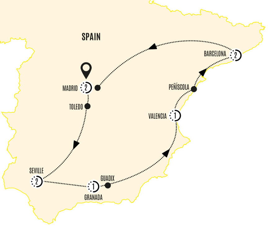 Arriving today, check in to your hotel and get settled in before meeting up with your Travel Director and fellow travellers for a look at what's to come on your Spain value tour. Venture out into the streets at sunset and watch this football-mad city really come to life. You might like to join us for an optional walking tour around the city sights with the opportunity to get your first taste of tapas at a local restaurant. You'll quickly find out why the city's lively nightlife keeps the locals up until all hours of the night. Stay: Zentral Castellana Norte