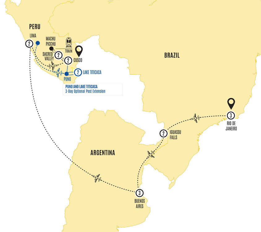 3 countries, 2 New Wonders of the World and 1 incredible adventure later, your trip will finally come to an end this morning. Leaving with priceless memories, a wealth of new knowledge and a wonderful group of new friends, you'll make your way to the airport today. Departure is at leisure from Cusco Airport. (B)