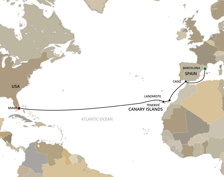 The Port of Cádiz is located directly adjacent to the city center, so you'll be able to explore the historic heart of Cádiz with a short 10-minute walk. The city is renowned for its ancient maritime heritage, beautiful beaches, and well-preserved landmarks such as the Cádiz Cathedral and the Torre Tavira, offering panoramic views of the city. If your plan is to visit Seville, it's about 120 kilometers (75 miles) away - roughly a 90-minute drive. Consider arranging a guided excursion to make the most of your time in this historic city.