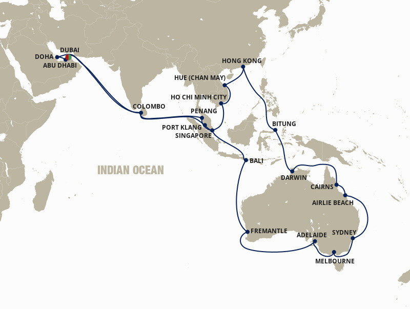 Known as the shining jewel of Qatar, Doha sits on the east coast lapped by the warm waters of the Persian Gulf. It is an ancient city in the midst of a modern renaissance as evidenced by stunning new buildings, resorts, shopping malls, and sporting venues emerging from the desert landscape like a futuristic oasis. Ships will dock at Doha Port.