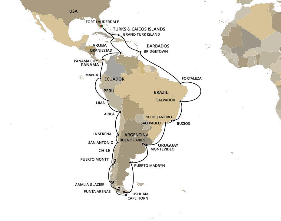 Located at the southernmost end of South America, Ushuaia is is often called a doorway to Antarctica. The town boasts incredible natural beauty through its national parks like the Tierra del Fuego National Park with cultural institutions like the Museo del Fin del Mundo, or the End of the World Museum. Ships will dock at this port.