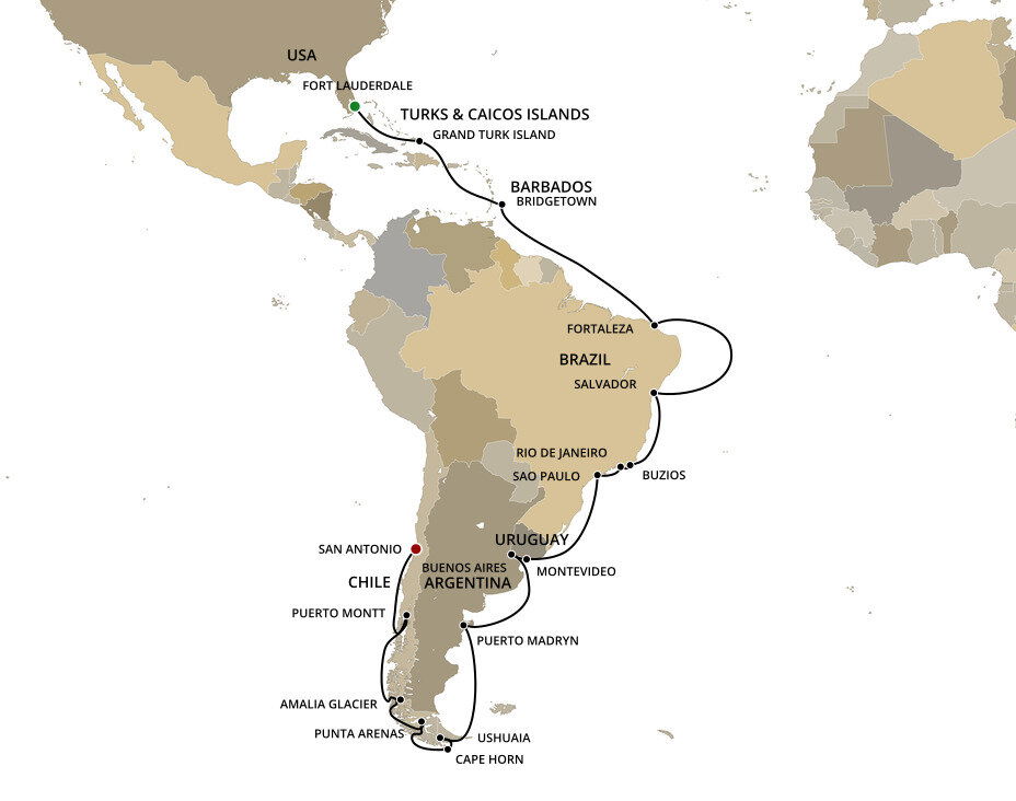Located at the southernmost end of South America, Ushuaia is is often called a doorway to Antarctica. The town boasts incredible natural beauty through its national parks like the Tierra del Fuego National Park with cultural institutions like the Museo del Fin del Mundo, or the End of the World Museum. Ships will dock at this port.