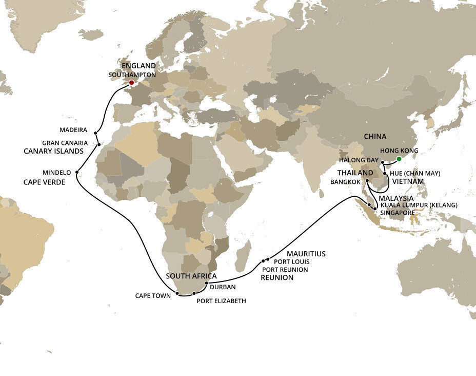 To reach London from Southampton, you can take a train from Southampton Central (the station is within a short taxi ride from the cruise terminals) to London Waterloo, with the journey taking around 1.5 hours - that's approximately 128 km's (80 miles). Alternatively if you're travelling by coach or have arranged a private transfer, please allow around 2 hours for the journey.