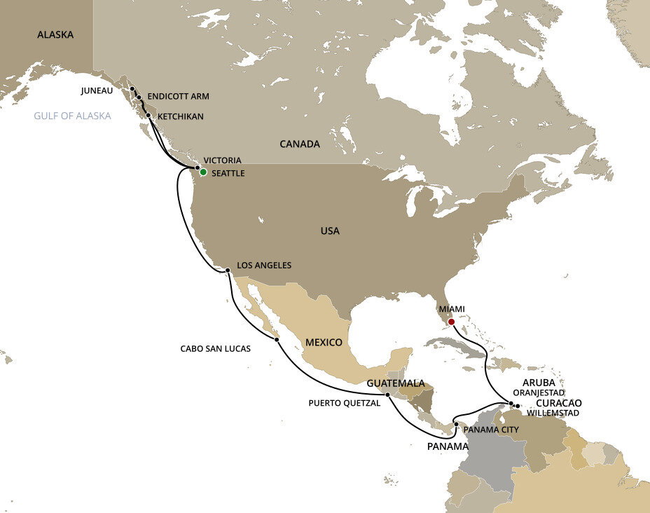 This multicultural city where the sun rules supreme is more than just a cruise port. Palm-lined causeways stretch across luminous Biscayne Bay as Miami rises in a gleam of glass towers, Art Deco curves, and tropical colour. Along Ocean Drive in South Beach, pastel facades from the 1930s glow beneath the Florida sun, while nearby Little Havana hums with domino parks, cigar shops, and the aroma of Cuban coffee. Beyond the shoreline, calm waters, yacht marinas, and breezy promenades frame a city shaped by Caribbean rhythms and sunlit coastal glamour.