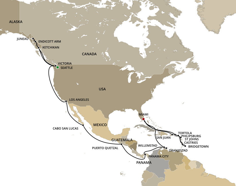 This multicultural city where the sun rules supreme is more than just a cruise port. Palm-lined causeways stretch across luminous Biscayne Bay as Miami rises in a gleam of glass towers, Art Deco curves, and tropical colour. Along Ocean Drive in South Beach, pastel facades from the 1930s glow beneath the Florida sun, while nearby Little Havana hums with domino parks, cigar shops, and the aroma of Cuban coffee. Beyond the shoreline, calm waters, yacht marinas, and breezy promenades frame a city shaped by Caribbean rhythms and sunlit coastal glamour.
