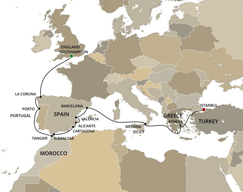 Once the seat of two massive empires, Istanbul has been shaped by its colourful history. From massive Byzantine churches, to towering Ottoman mosques, history can be found in each building no matter what part of the city you wander through. Ships will dock at the Galataport cruise ship terminal which is a 40 minute drive from the Istanbul Airport.