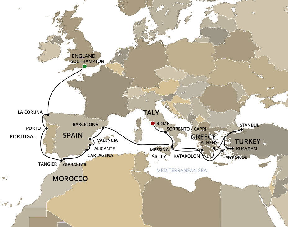 Once the seat of two massive empires, Istanbul has been shaped by its colourful history. From massive Byzantine churches, to towering Ottoman mosques, history can be found in each building no matter what part of the city you wander through. Ships will dock at the Galataport cruise ship terminal which is a 40 minute drive from the Istanbul Airport.