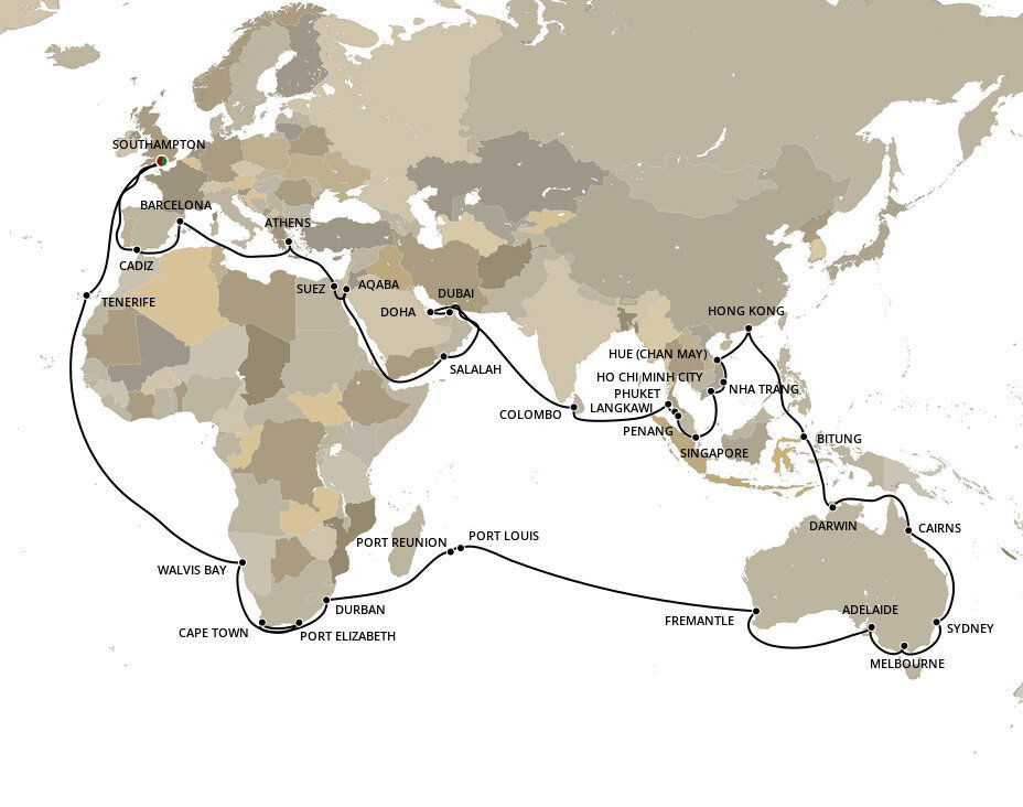 To reach London from Southampton, you can take a train from Southampton Central (the station is within a short taxi ride from the cruise terminals) to London Waterloo, with the journey taking around 1.5 hours - that's approximately 128 km's (80 miles). Alternatively if you're travelling by coach or have arranged a private transfer, please allow around 2 hours for the journey.
