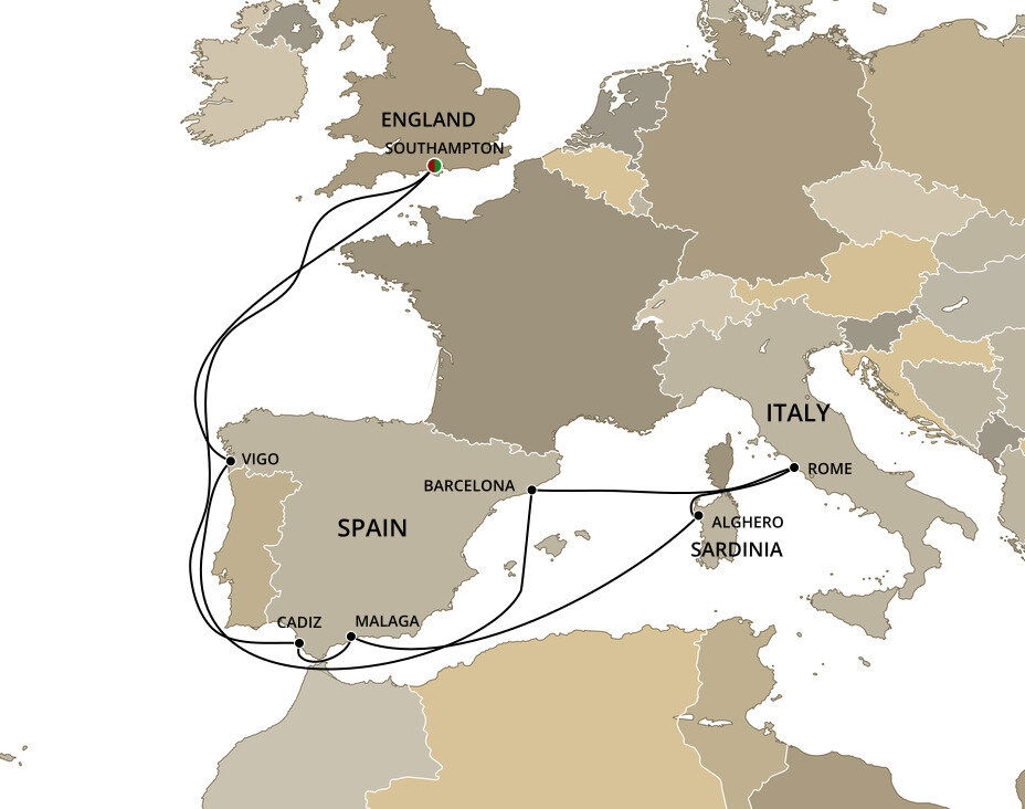 Málaga is the lively capital of the Costa del Sol, famed for its beaches and mild climate. It is a city of narrow streets, whitewashed houses, churches and sunny plazas. Málaga also serves as a popular starting point for excursions to splendid Granada and the famed Alhambra. Ships will dock at the Málaga cruise terminal.