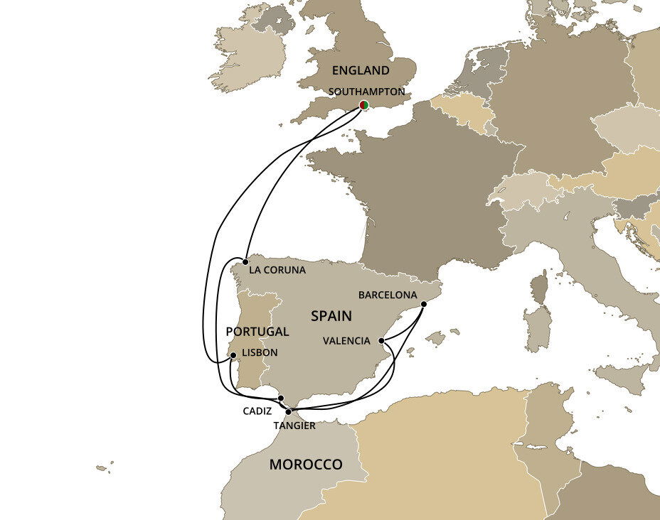 Perched on a rocky peninsula in Spain's northwest, La Coruña is brimming with ancient Roman heritage and maritime history. This historic town is nicknamed the 'Crystal City' due to the 19th-century enclosed glass balconies that reflect the glittering waters of the Atlantic. Ships will dock at the Port of La Coruña.