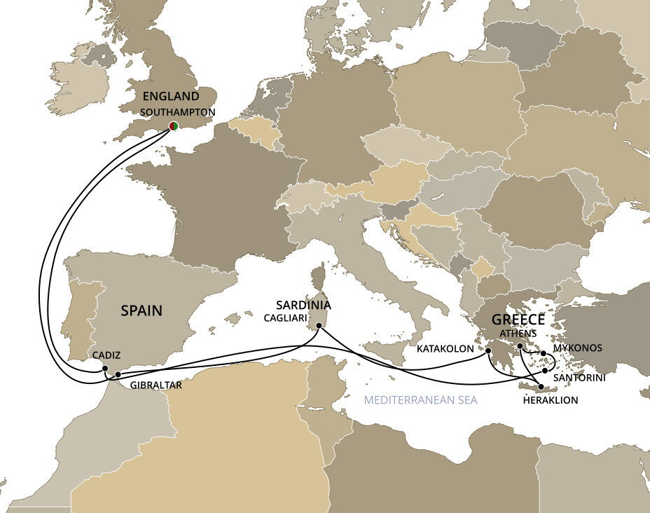 Heraklion, also known as Iraklion, is adorned with a rich collection of quality museums, ancient ruins from antiquity, and a lively culture. The city is built on a hillside overlooking its port and is encircled by impressive Venetian walls. Ships will dock in the port of Heraklion.