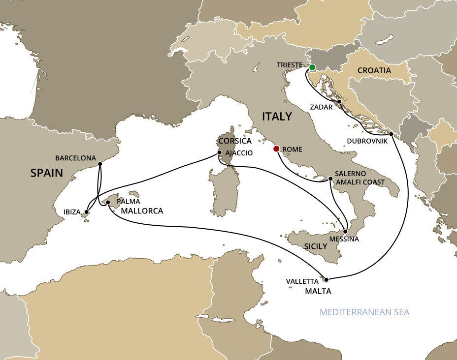 The lively seaport of Salerno is a thriving modern metropolis with ancient origins. Its elegant lungomare, a shoreside promenade, offers far-reaching views of the sea and the mountains beyond. The city boasts an ideal location with both the ruins of Roman cities and the stunning Amalfi Coast in easy reach. Ships will dock at this port.