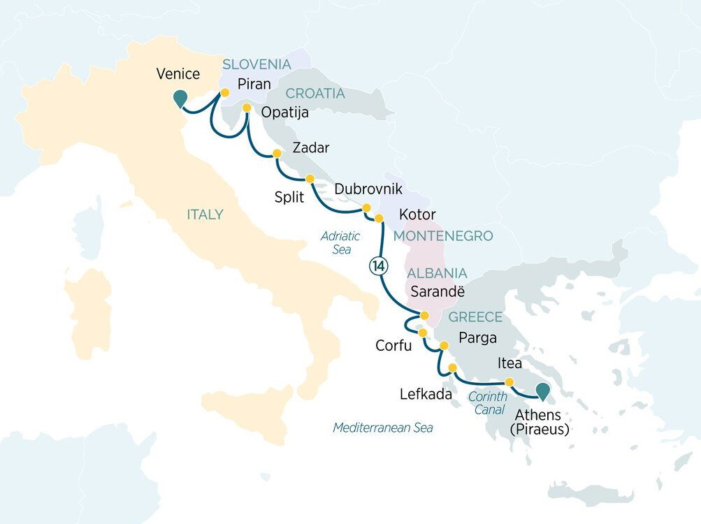 Today it’s time to sail through the 19th-century Corinth Canal. A feat of engineering, this narrow waterway was cut from solid rock and is more than six kilometres long with walls that reach up to 90 metres high. It crosses the isthmus of Corinth in Greece into the Ionian Sea. Sail to the small port of Itea, then embark on a journey to the archaeological site of Delphi, regarded by the Ancient Greeks as the centre of the world. This well-preserved UNESCO World Heritage Site is nestled within the mountainside was a sacred space where pilgrims could hear prophecies directly from the Gods. (B/L/D)