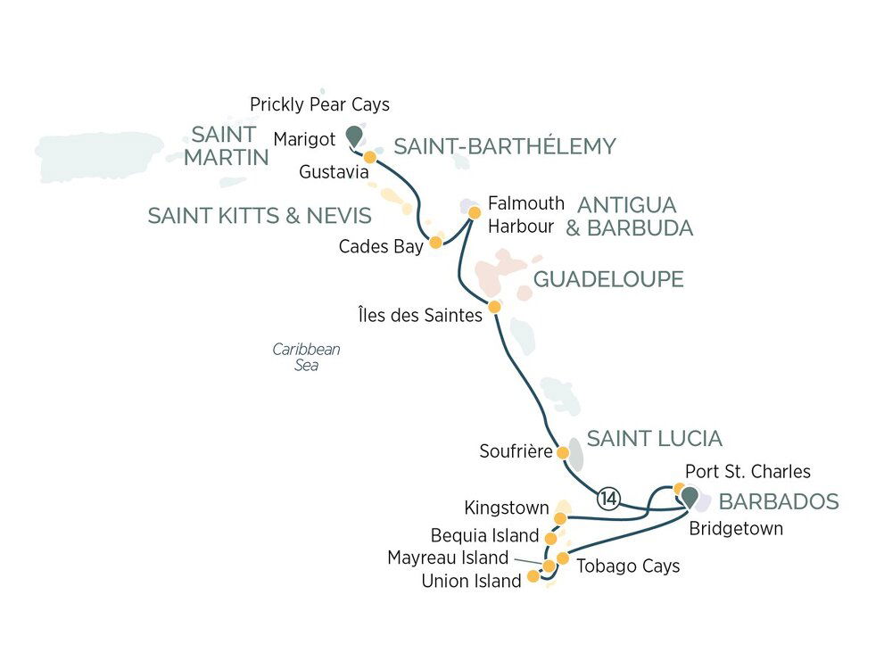 Îles des Saintes, known as Les Saintes, is a miniature archipelago of eight tropical islands with a distinctive French and Caribbean culture fusion. Discover the quaint towns, with their collection of petite stone buildings and small white-sand beaches. Don’t miss Fort Napoleon, a significant historical site with incredible views of one of the islands. (B/L/D)