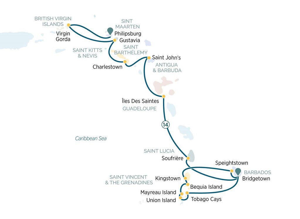 Your exciting Caribbean voyage begins in Philipsburg, the capital of Sint Maarten, located on the Dutch side of Saint Martin. Here, you'll be transferred to your Emerald Cruises luxury yacht for the start of your voyage into paradise. (D)
