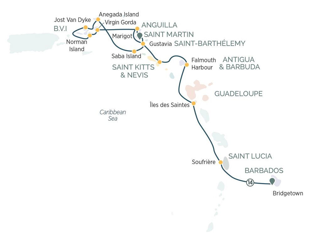 Your Emerald Cruises exciting Caribbean journey begins in Marigot, the capital of the island of Saint Martin. You’ll be transferred to your Emerald Cruises luxury yacht to begin an adventure into paradise. (D)