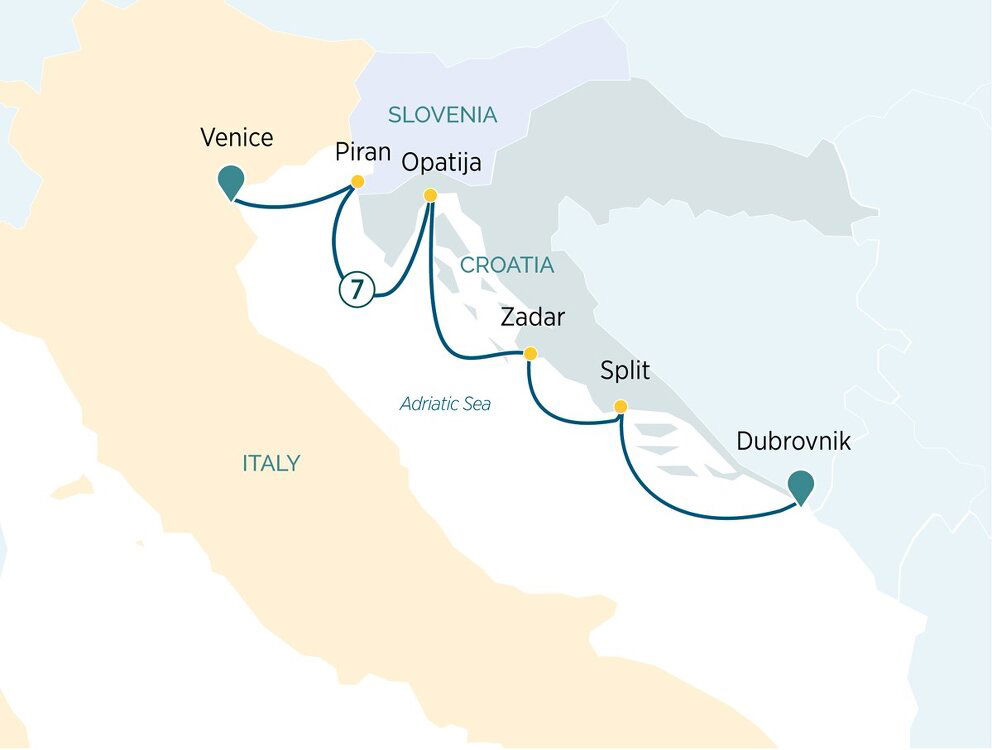Known as the ‘Pearl of the Adriatic,’ Dubrovnik presents a compelling historic city along Croatia's Dalmatian Coast; its walled Old Town presents one of the finest examples of a medieval citadel in Europe. With its storied history and breathtaking views of iconic terracotta rooftops and the alluring Adriatic Sea, Dubrovnik offers the perfect blend of cultural exploration and a relaxing beach holiday. (B/L/D)