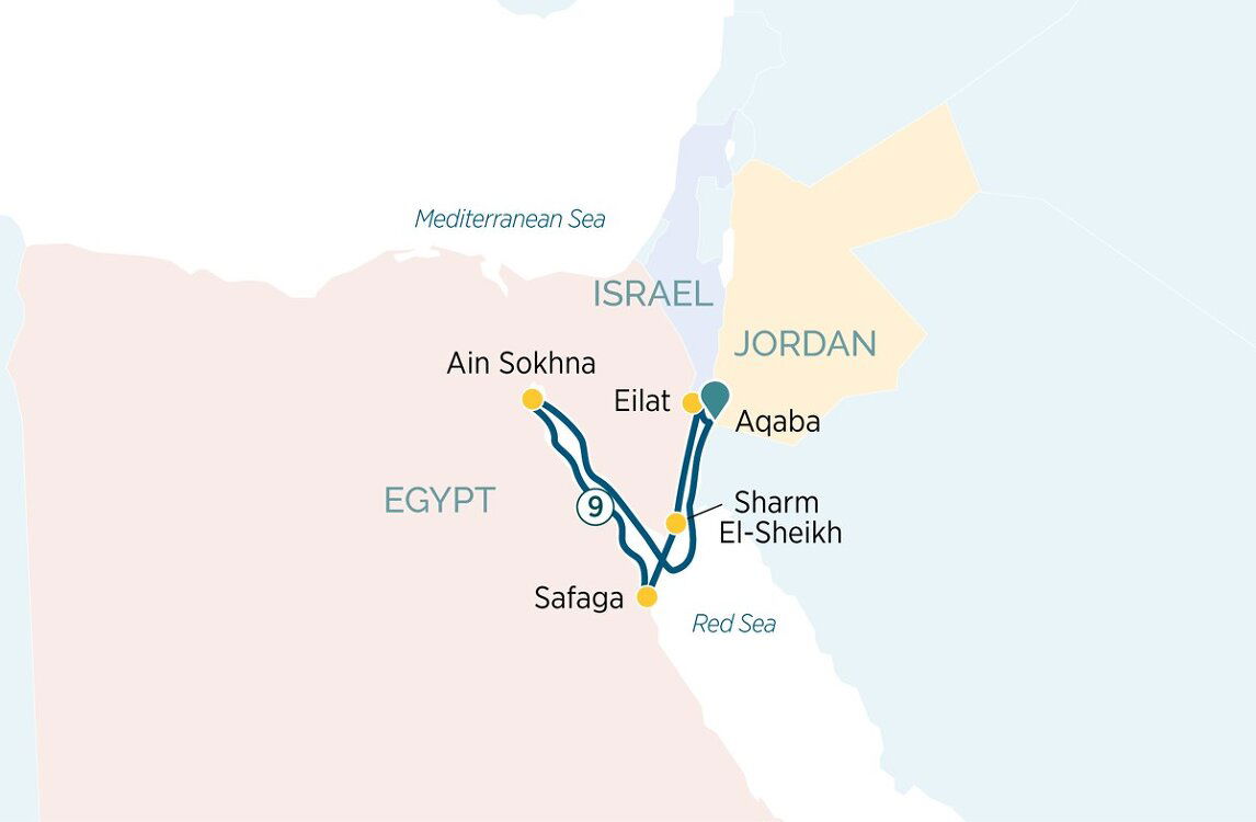 On the tip of Egypt’s Sinai Peninsula, you’ll discover the glamorous resort city of Sharm El-Sheikh. Here, the desert meets the sea, creating an environment rich in biodiversity and a melting pot of cultures. Spend your day diving into the colourful world beneath the Red Sea’s shimmering surface, or take a step back in time, exploring the city’s ancient mosques and bustling bazaars, steeped in tradition. (B/L/D)