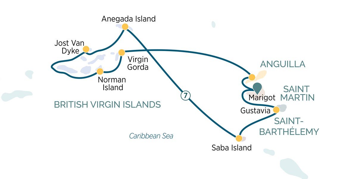 Your Emerald Cruises exciting Caribbean journey begins in Marigot, the capital of the island of Saint Martin. You’ll be transferred to your Emerald Cruises luxury yacht to begin an adventure into paradise.