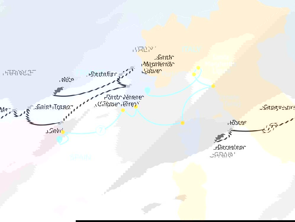 Your luxurious yacht cruise concludes in Catalonia’s cosmopolitan capital, Barcelona, where you’ll be transferred to the airport for your return flight home or to continue your travels.