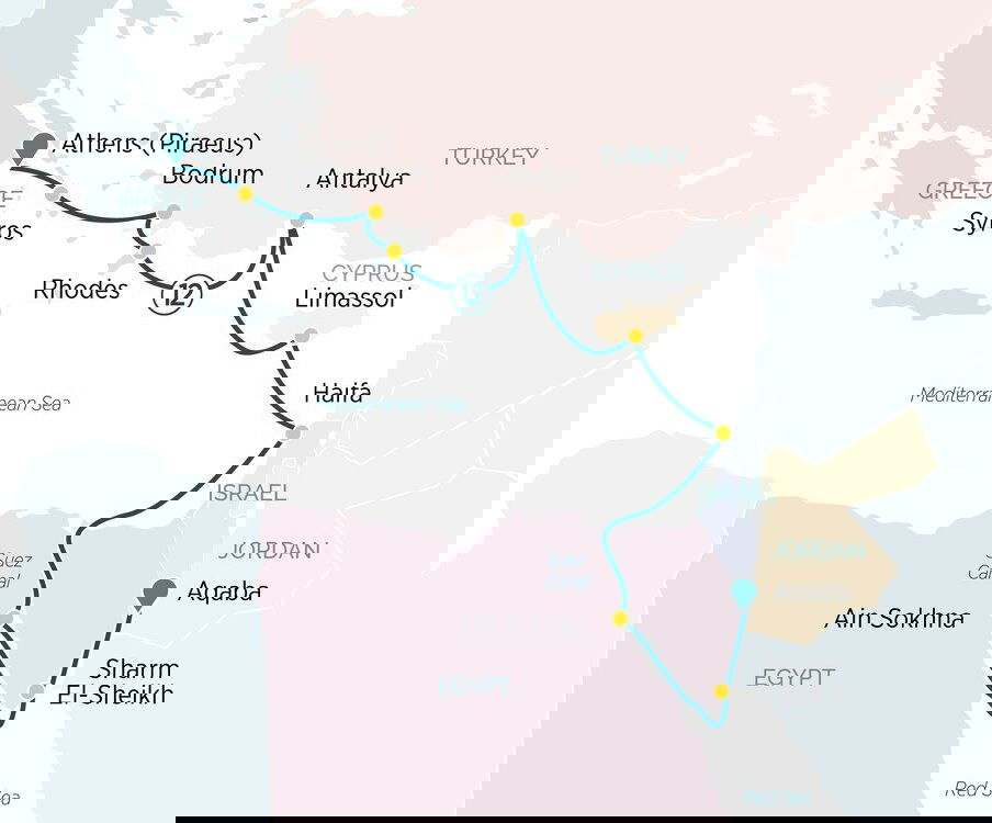Today, you'll navigate through the historic Suez Canal before reaching Israel and your next port of call, Ashdod. Constructed by Ferdinand de Lesseps and completed in 1869, this incredible man-made waterway carves through 162 kilometres (100-miles) of desert, linking the Mediterranean Sea to the Red Sea and facilitating global trade and maritime transport. (B/L/D)