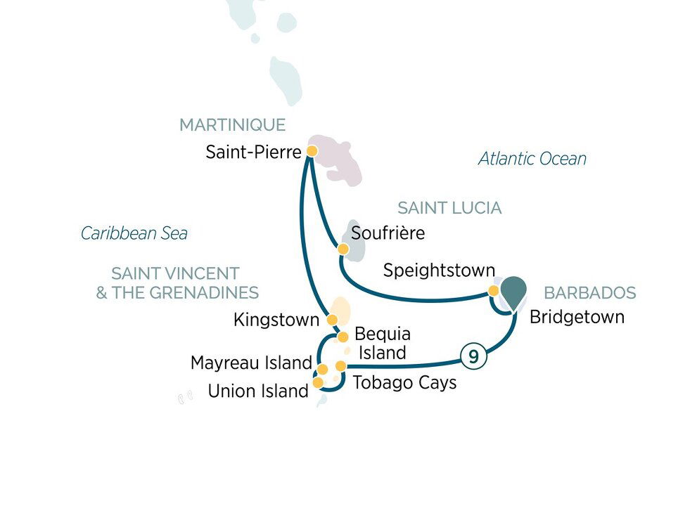 Today, you'll arrive in Mayreau, the smallest of the Grenadines' inhabited islands, measuring just four-square-kilometres (1.5-square-miles), with a population of approximately 250 inhabitants. From the quaint church and community centre at the top of the island's highest hill, admire the spectacular island views. On a clear day, you can see both Grenada and Saint Vincent islands, along with the vivid colours of the coral reefs and surrounding waters.