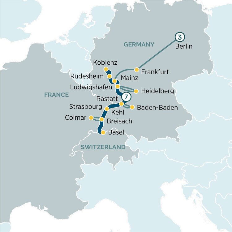 Relax on board as you pass through the idyllic surrounds of Petite France and conclude in the UNESCO World Heritage-listed Neustadt imperial quarter, where many of Strasbourg’s noteworthy buildings are based. This afternoon, enjoy free time to explore at leisure. (B/L/D)