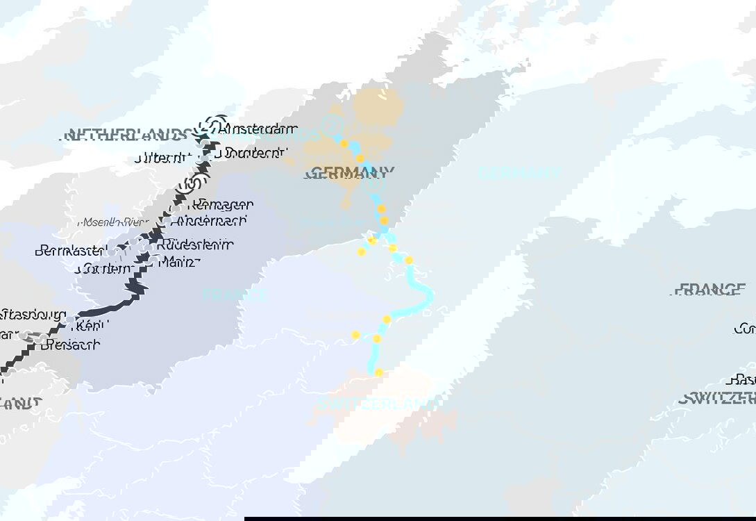 After breakfast, it is time to bid farewell to your fellow passengers as you leave your accommodation for your transfer to the airport, taking memories from a fascinating journey on the Rhine.