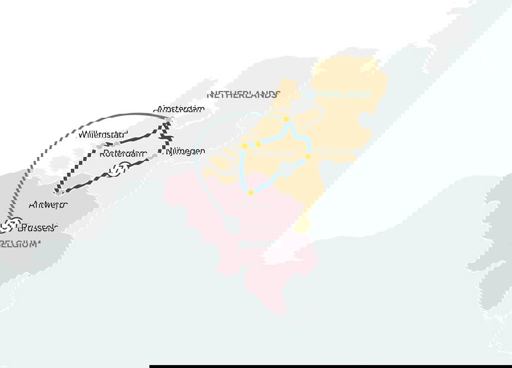 Welcome to Nijmegen, the Roman settlement of Noviomagus and the oldest town in the Netherlands. Join a walking tour through its centre, exploring its architectural wonders and learn more about the International Four Days Marches Nijmegen that takes place every year, welcoming tens of thousands of people. If you are feeling more active, join a bike ride along the river, embracing the unique countryside features along the Waal river. (B/L/D)