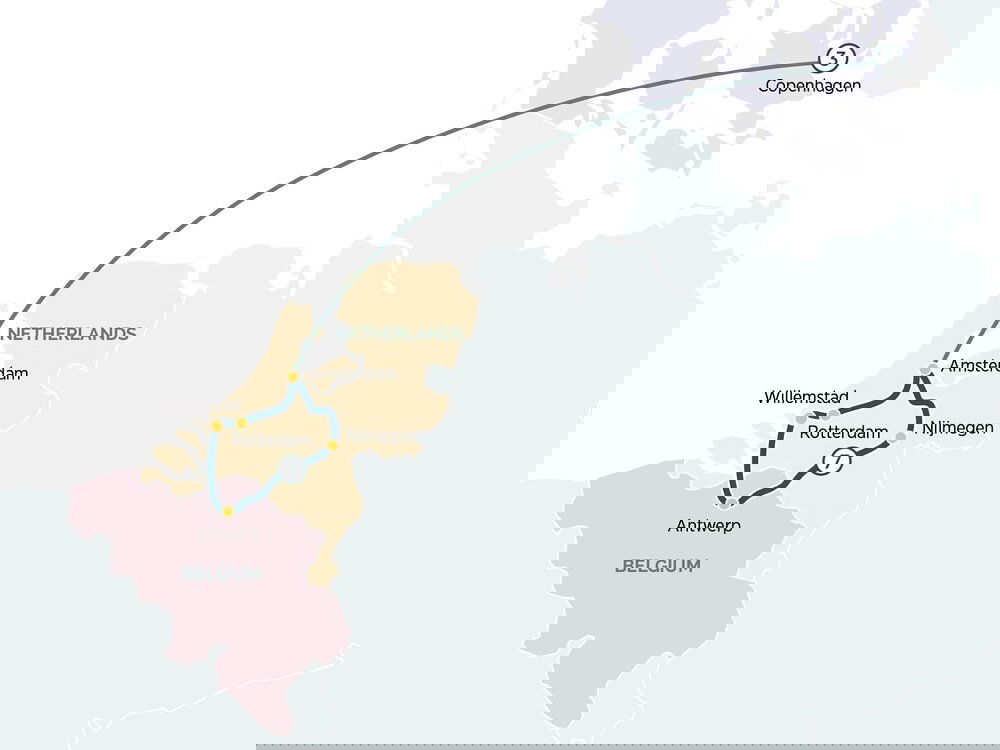 Welcome to Nijmegen, the Roman settlement of Noviomagus and the oldest town in the Netherlands. Join a walking tour through its centre, exploring its architectural wonders and learn more about the International Four Days Marches Nijmegen that takes place every year, welcoming tens of thousands of people. If you are feeling more active, join a bike ride along the river, embracing the unique countryside features along the Waal river. (B/L/D)
