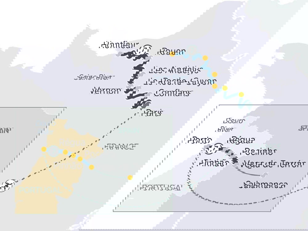 After breakfast, you will disembark your Emerald Cruises Star-Ship for your flight to Paris, where your river cruising journey will continue. (B/D)