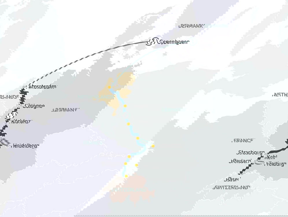 Today discover the enchanting city of Freiburg, nestled amidst the Black Forest. Explore its historic center, lined with colorful half-timbered houses and a vibrant market square. Wander through the picturesque botanical garden, showcasing a diverse array of flora. For a more active experience, choose an exhilarating bike tour around Breisach, a charming medieval town with stunning views of the Rhine River. Immerse yourself in the natural beauty and cultural richness of this captivating region. (B/L/D)