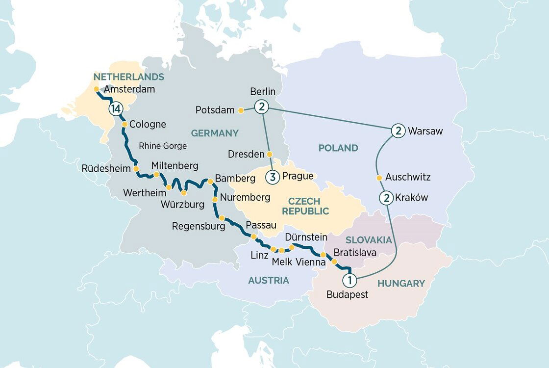 Later, return for an afternoon spent peacefully cruising through the heart of Europe. (B/L/D)