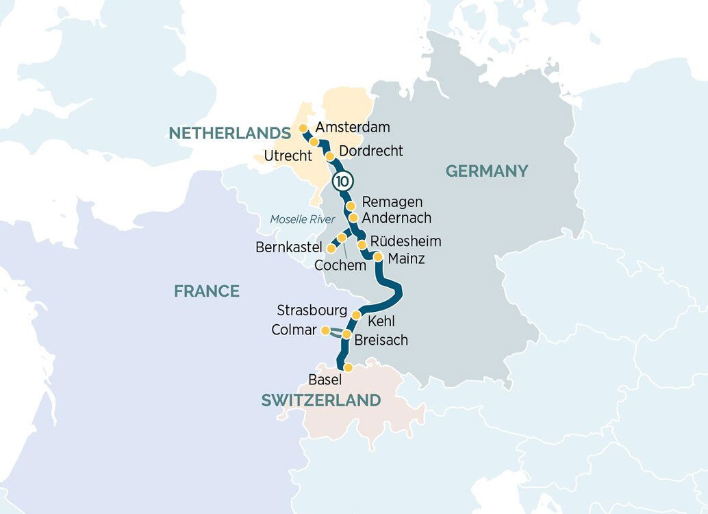 After breakfast, it's time to say farewell to your fellow guests. Disembark your Star-Ship for your transfer to the airport and take with you memories of all the beautiful Moselle with its vineyards and the castles on the legendary Rhine.