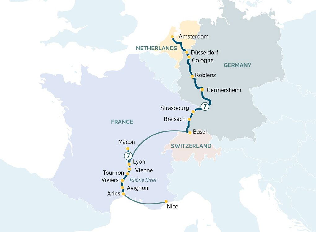We’ll take you into the heart of Koblenz, an ancient city pulled from the pages of a German fairy tale. Enjoy the picturesque backdrop of vineyards and snow-topped mountain ranges as your local guide takes you through open cobbled squares and down narrow streets, passing façades adorned with boxes of spring-blooming flowers. You’ll also have the chance to see the point at which two of Europe’s great rivers meet at the German Corner and Ehrenbreitstein Fortress, one of the largest preserved fortresses in Europe. (B/L/D)