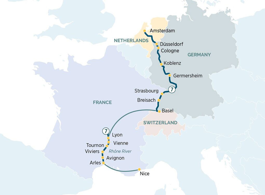 After breakfast, it’s time to say farewell to your fellow guests as you disembark for your transfer to the airport, taking memories of spring-blooming flowers and delightful cobblestone squares with you.