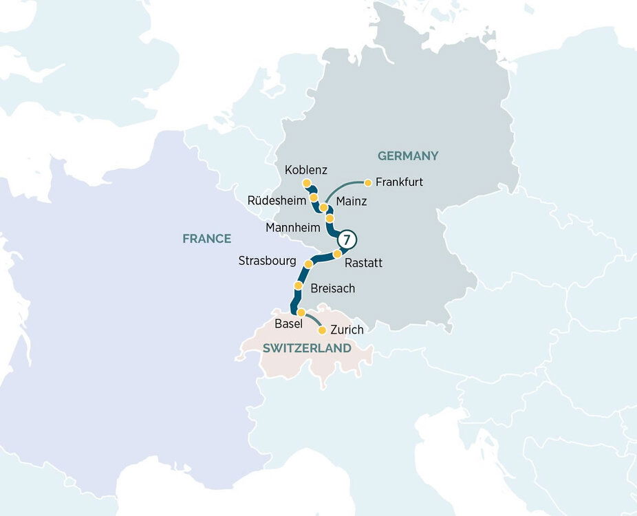 After breakfast, it is time to say farewell to your fellow guests and disembark your Star-Ship for your transfer to the airport, taking memories of the picturesque Rhine Gorge with you.