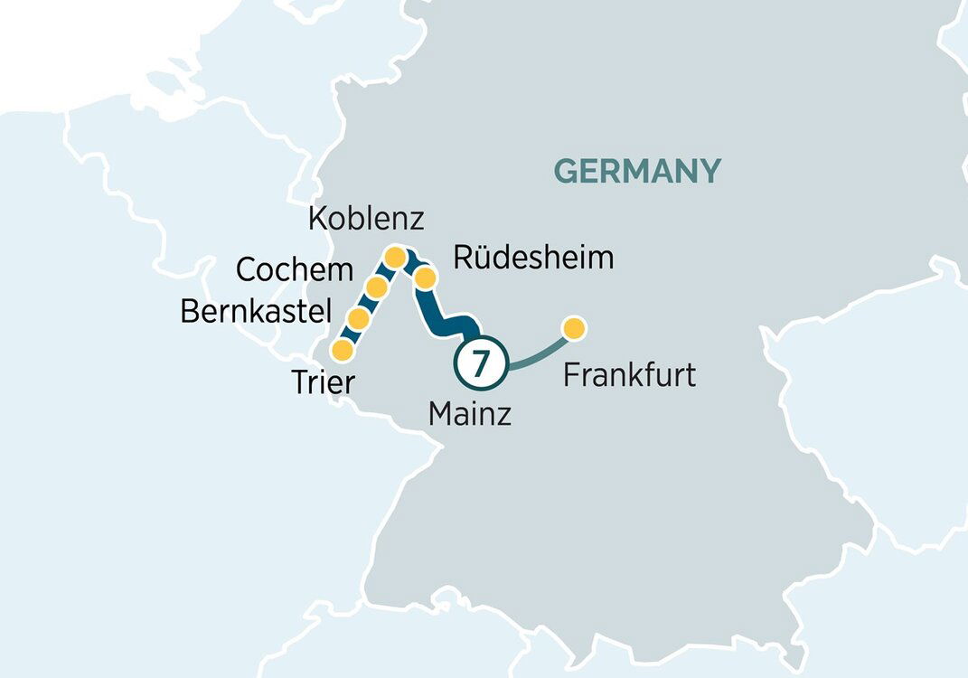 This morning, after breakfast, it’s time to bid farewell to your fellow guests and disembark your Emerald Star-Ship for your transfer to Frankfurt airport, leaving with cherished memories.