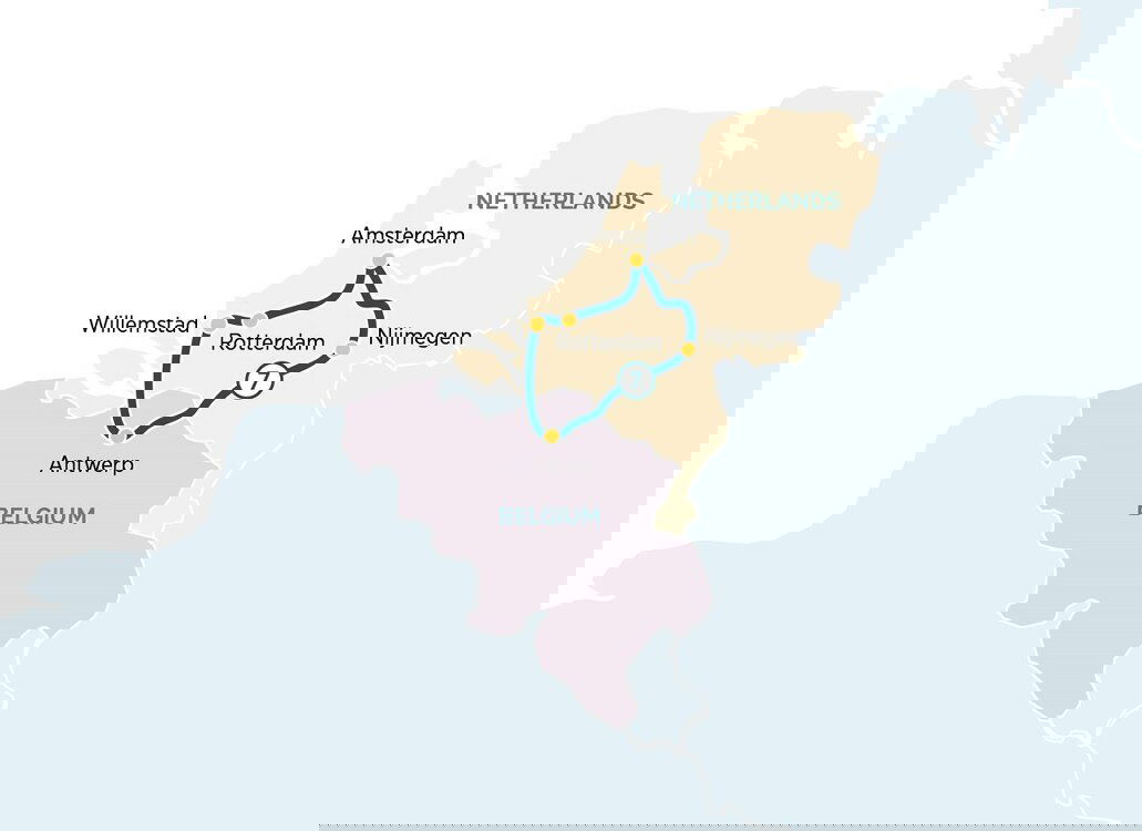 Welcome to Nijmegen, the Roman settlement of Noviomagus and the oldest town in the Netherlands. Join a walking tour through its centre, exploring its architectural wonders and learn more about the International Four Days Marches Nijmegen that takes place every year, welcoming tens of thousands of people. If you are feeling more active, join a bike ride along the river, embracing the unique countryside features along the Waal river. (B/L/D)