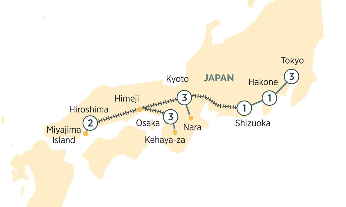 Today, you’ll take the ferry to Miyajima Island, a small and picturesque island set in Hiroshima Bay. Here, you’ll visit Daisho-in Temple and its famous floating Torii Gate at the Itsukushima Shrine, also built over the water. Later, enjoy time at leisure to explore more of fascinating Hiroshima. (B/L)