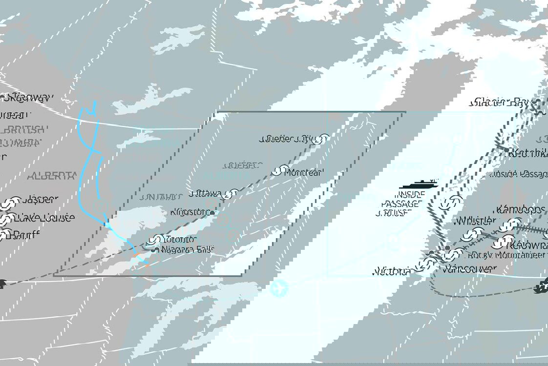 Welcome to Canada. This evening, meet your Tour Director and fellow travellers for a welcome dinner. (D)