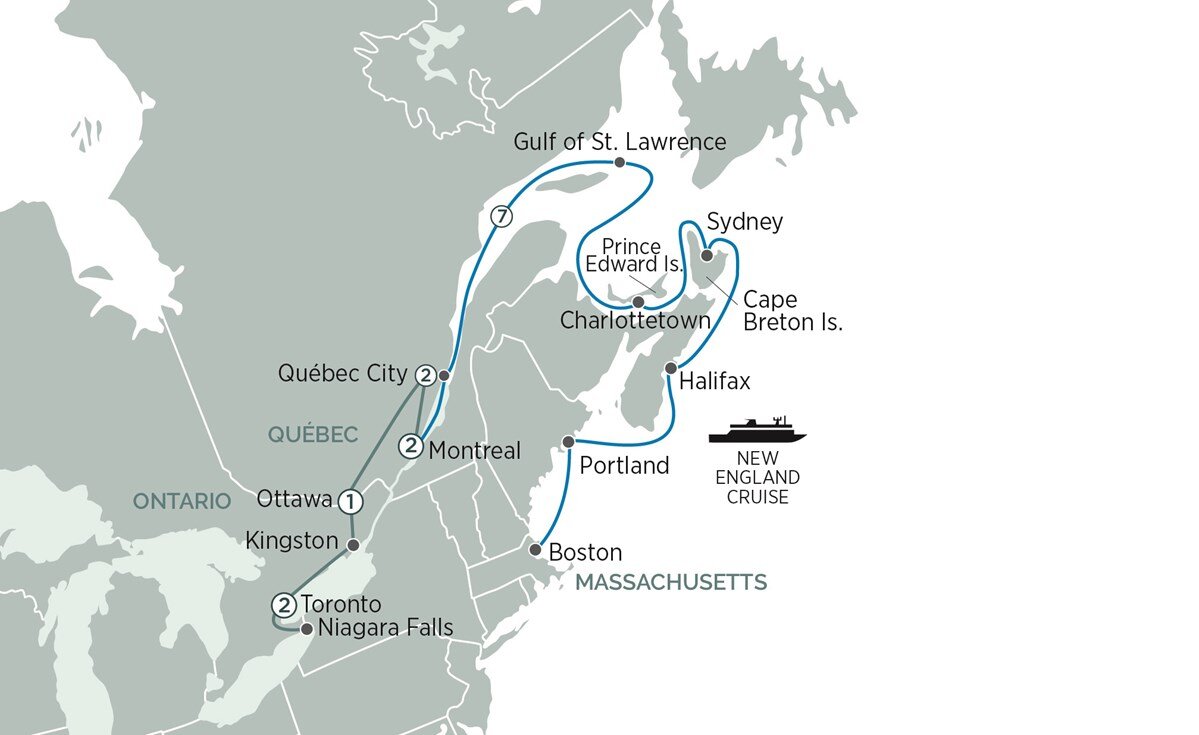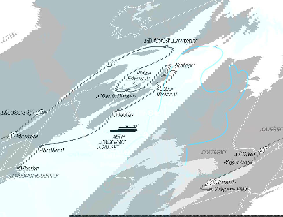 Arrive in Halifax and spend the day docked in one of the world’s most beautiful natural harbours. Explore this fascinating and historic city on your own or perhaps take an optional tour to delightful Peggy’s Cove (shore excursions at own expense). (B/L/D)