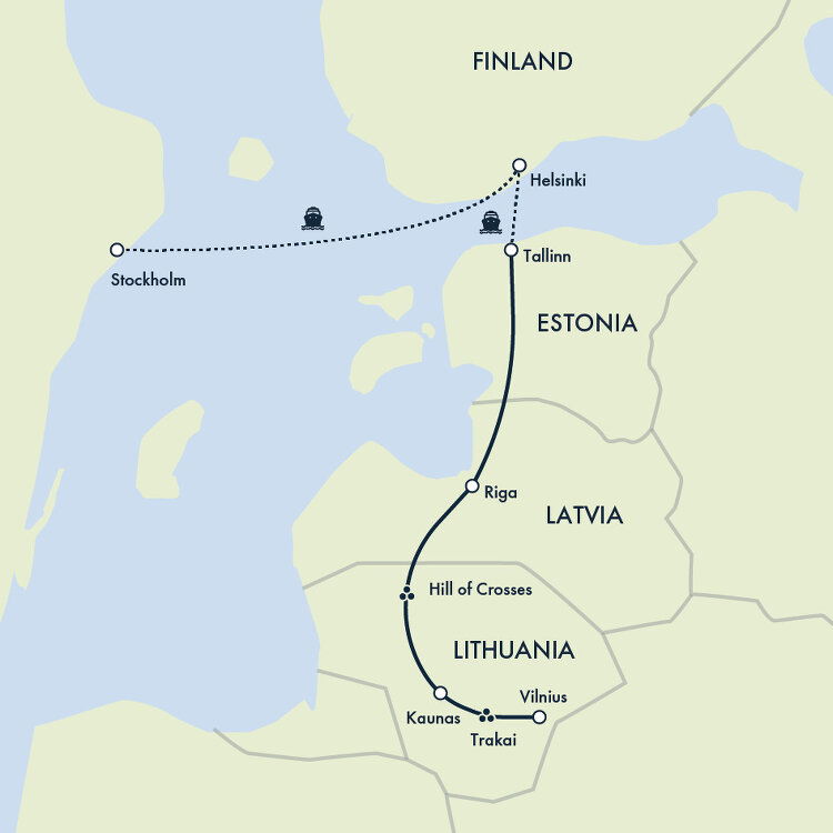 We leave Vilnius this morning for Riga, the capital of Latvia. Along the way, we stop at the Hill of Crosses, a striking collection of more than 100,000 crosses on a low hill. It's a pilgrimage site but also acted as a symbol of defiance against the once-ruling Soviets, who had banned religion.