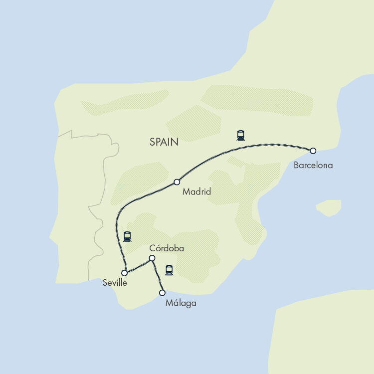 Enjoy your last train journey of this adventure after breakfast, taking a taxi to the station for our train ride to Malaga.
