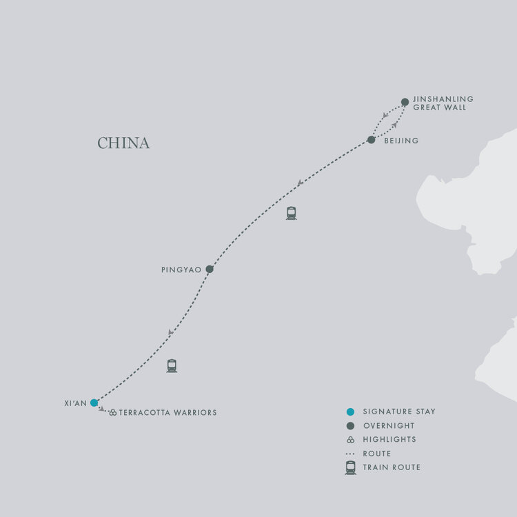 After breakfast, take a final moment to reflect on the journey – from imperial palaces and ancient city walls to quiet villages and the mountain ridges of the Great Wall. Your complimentary transfer will take you to the airport for onward travel. If you have time before departure, linger a little longer over tea or a final stroll through Xi'an's historic streets. This chapter may have come to an end, but China has countless more stories waiting to unfold.