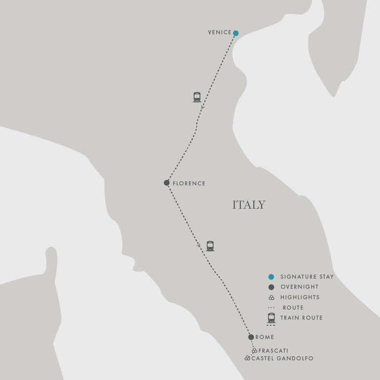 Travel into the Roman Castles region to Frascati, long known for its villas, winemaking heritage, and gentle hillside setting. Signature Experience: Our first stop is Azienda Agricola Marchesi, a family-run estate specialising in high-quality extra virgin olive oils. Here, we have a private tasting of the estate wines and olive oils guided by those who cultivate, press and bottle them, before sitting down to a light lunch shaped by the estate's seasonal produce and long-held traditions. Return to Rome for an unhurried afternoon before our farewell dinner at Casa Coppelle, where Italian-French cooking and elegant interiors provide a fitting final chapter.