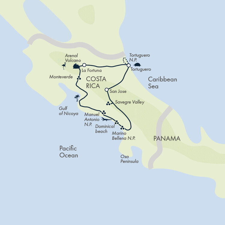 Begin your adventure in San José, the culture-rich capital of Costa Rica. A complimentary transfer from the airport to the hotel is available. Check in and take it easy, there's plenty of excitement on this trip, so today's all about relaxing and easing ourselves into the adventure. Around 7:30pm, say hola to your tour leader and fellow travellers when we gather as a group for a short briefing and an optional dinner together (which is included for all in 2026). Our main briefing takes place tomorrow afternoon in Tortuguero due to the late arrival of some flights today. Want to explore San Jose further? Secure pre-tour hotel nights through your sales representative. Stay: Presidente, KC Hotel or Delta by Marriott San José Aurola (or similar).