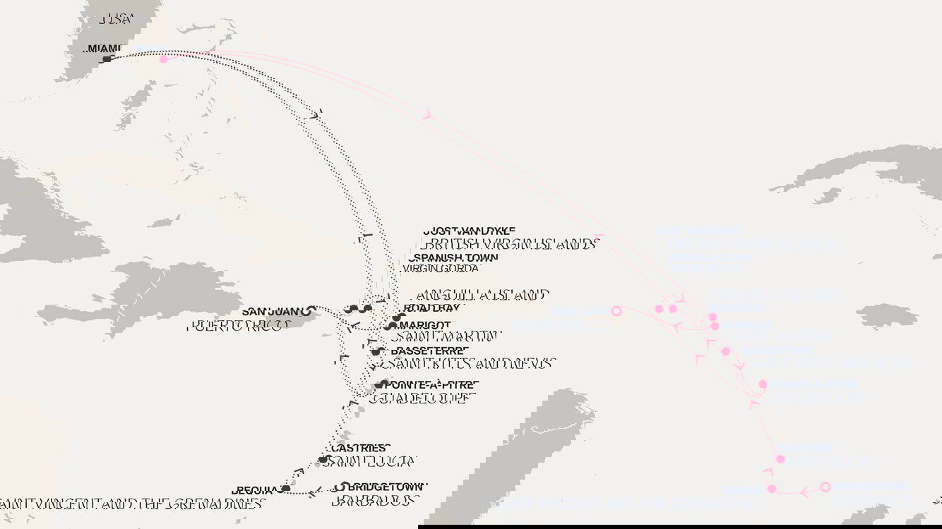 Saint Lucia is the quintessential island paradise, with the majestic peaks of the Pitons, the splendour of lush rainforests, and the blue-green waters of the Caribbean breaking just off shore. Here, the mix of Caribbean, African, English, and French cultures creates an exquisite blend of food, music, and traditions. Enjoy a leisurely morning visiting Sulphur Springs, the world's only drive-in volcano, where you can relax in therapeutic mud baths and hot springs. For a taste of local culture, head to Castries Market, bustling with vendors selling fresh produce, spices, and handmade crafts.