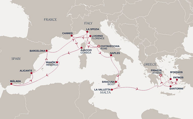 Dreamily sail into Santorini when others leave. Romantic, exuberant and pure; roam one of the world's most enchanting islands as you enjoy breathtaking scenery, rock-set whitewashed houses, paved paths, sugar white sand, black beaches and terracotta cliffs. Experience the many geological and architectural delights; blue-domed churches, an active volcano, excavate with experts and cover the caldera between cliff-hanging Oia and Fira. Glide through sapphire seas in a catamaran, taste local wine, eat freshly-caught seafood, break plates and shop elegant boutiques. Then settle in for a slow moonlit dinner high on a hilltop, just in time for the world-famous sunset.